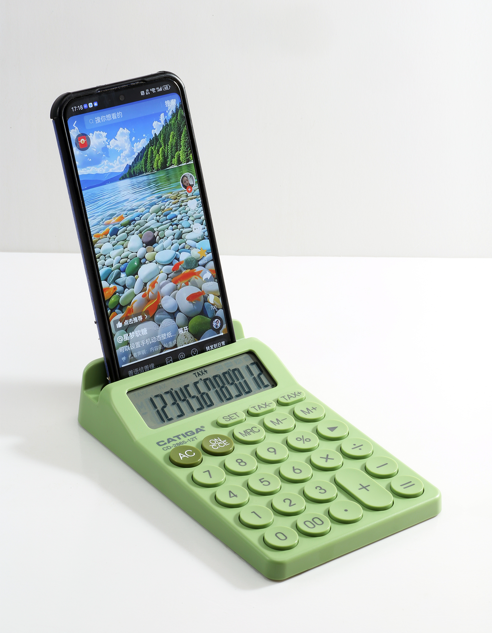 Types: desktop calculator with cell phone holder